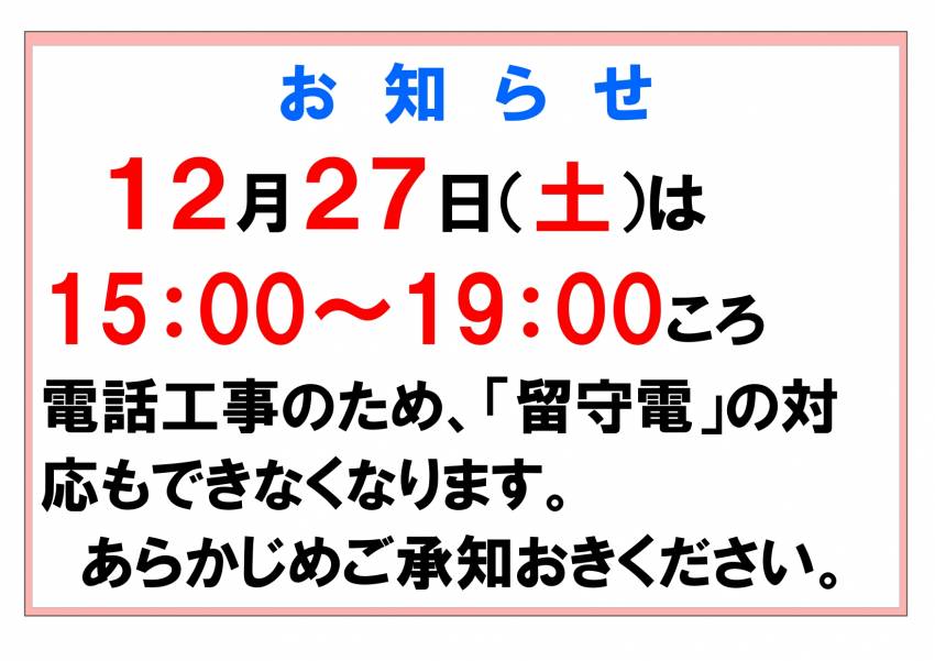 2025/12/12 教習所からのお知らせ